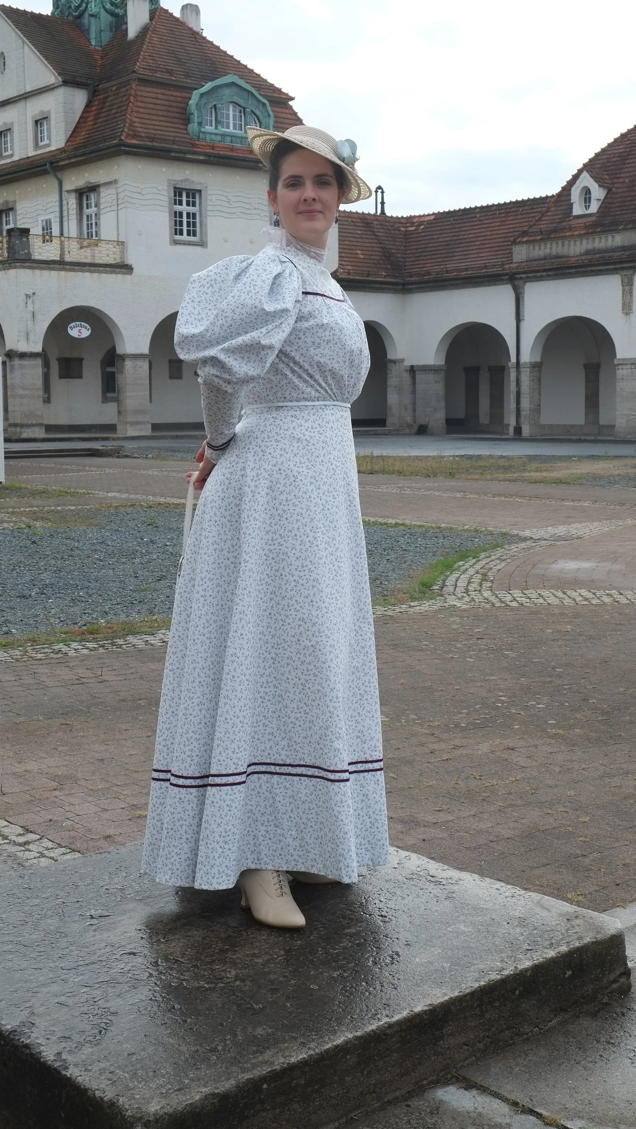 Dass man dieses Kleid so genau datieren kann ist wohl der Tatsachen geschuldet, dass das Schnittmuster aus einer Zeitschrift eben diesen Jahrgangs stammt. Es entspricht also der neusten Mode der Zeit mit den riesigen Keulenärmeln und dem weiten Rock. Es sollte kein all zu ernstes Kleid werden: Ein Kleid für die ersten warmen Tage des Jahres, mit einem Buch unter dem Arm auf den Weg in die Gartenlaube!