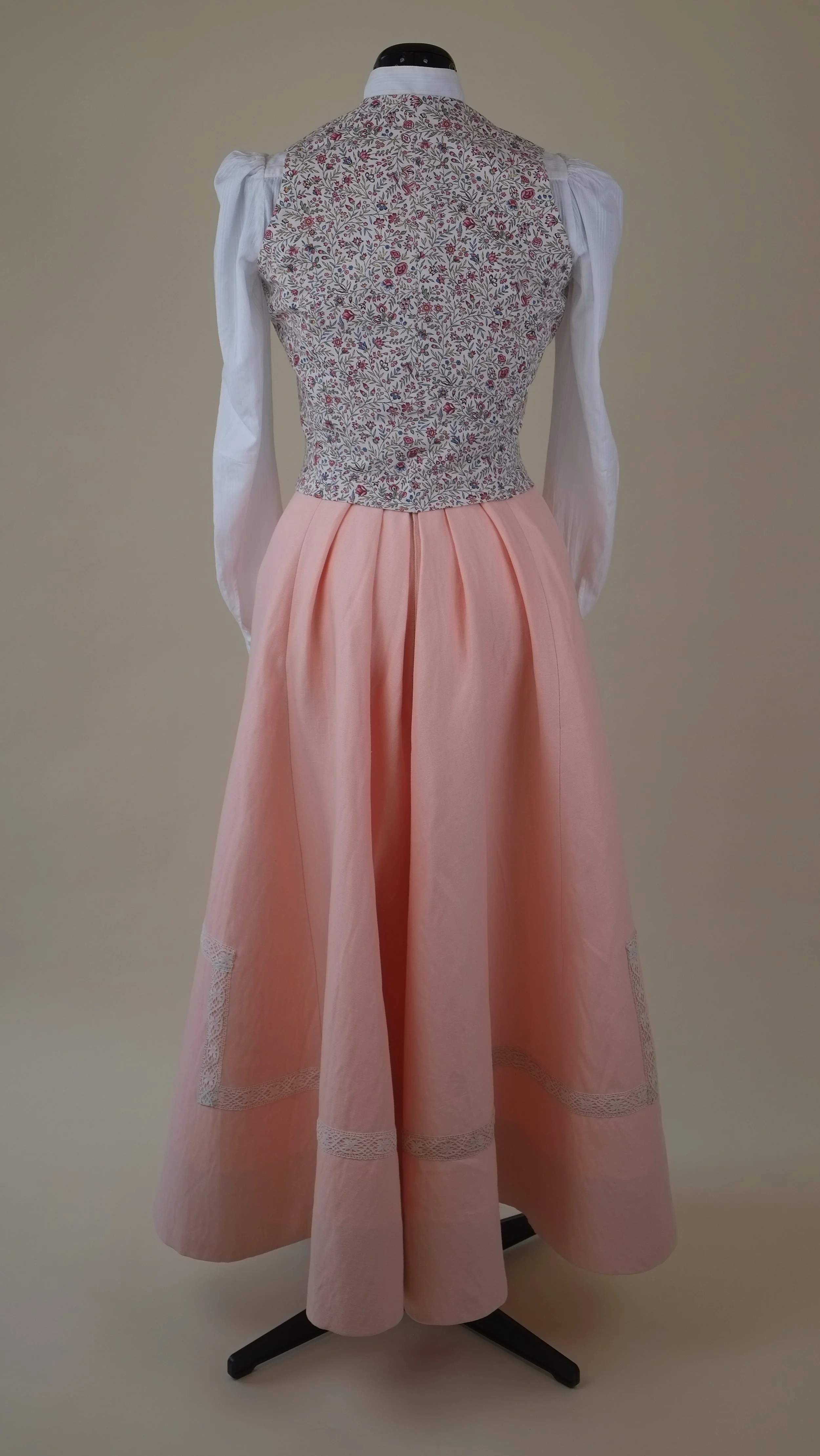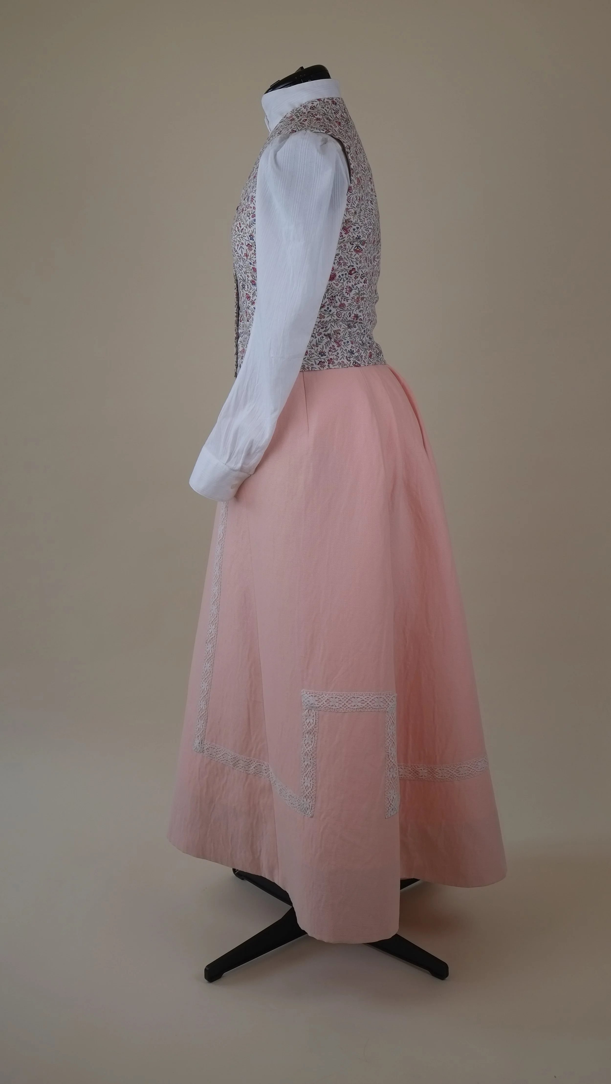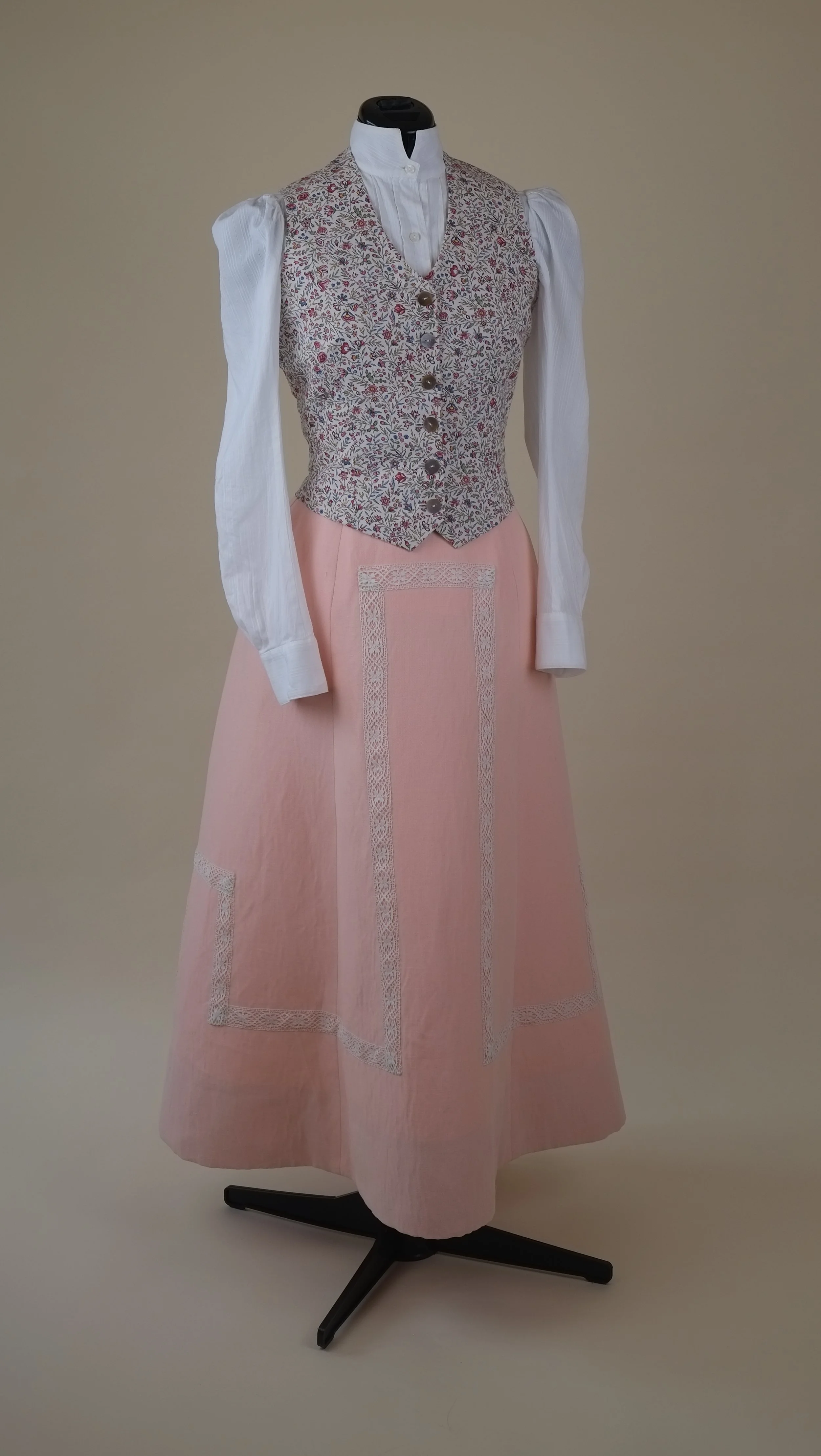 Als passende Kleidung sah man häufig ein Ensemble bestehend aus einem Rock und einer Jacke, manchmal zusätzlich noch aus einer Weste. Die Röcke waren verhältnismäßig kurz und reichten nur bis knapp oberhalb der Knöchel. Das erscheint aber nur logisch, braucht man doch ausreichend Beinfreiheit, um steile und steinige Wege zu erklimmen.